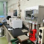 今年は高分子物性測定装置(動的粘弾性測定,引張試験機,真空プレス機,型抜き機,デジタルマイクロスコープ)を導入しました。アクリル系の(熱可塑性)エラストマーやシクロオレフィンポリマー,ポリオレフィン類などを成型し試験片を作成し,粘弾性測定や引張試験を行います。新規高分子の合成からその構造と熱・機械物性相関を明らかにするまで一貫して研究室内で行えるようにしました。すでに多数の物性情報を獲得することができています。また,自己修復性や形状記憶特性はデジタルマイクロスコープで観察します。